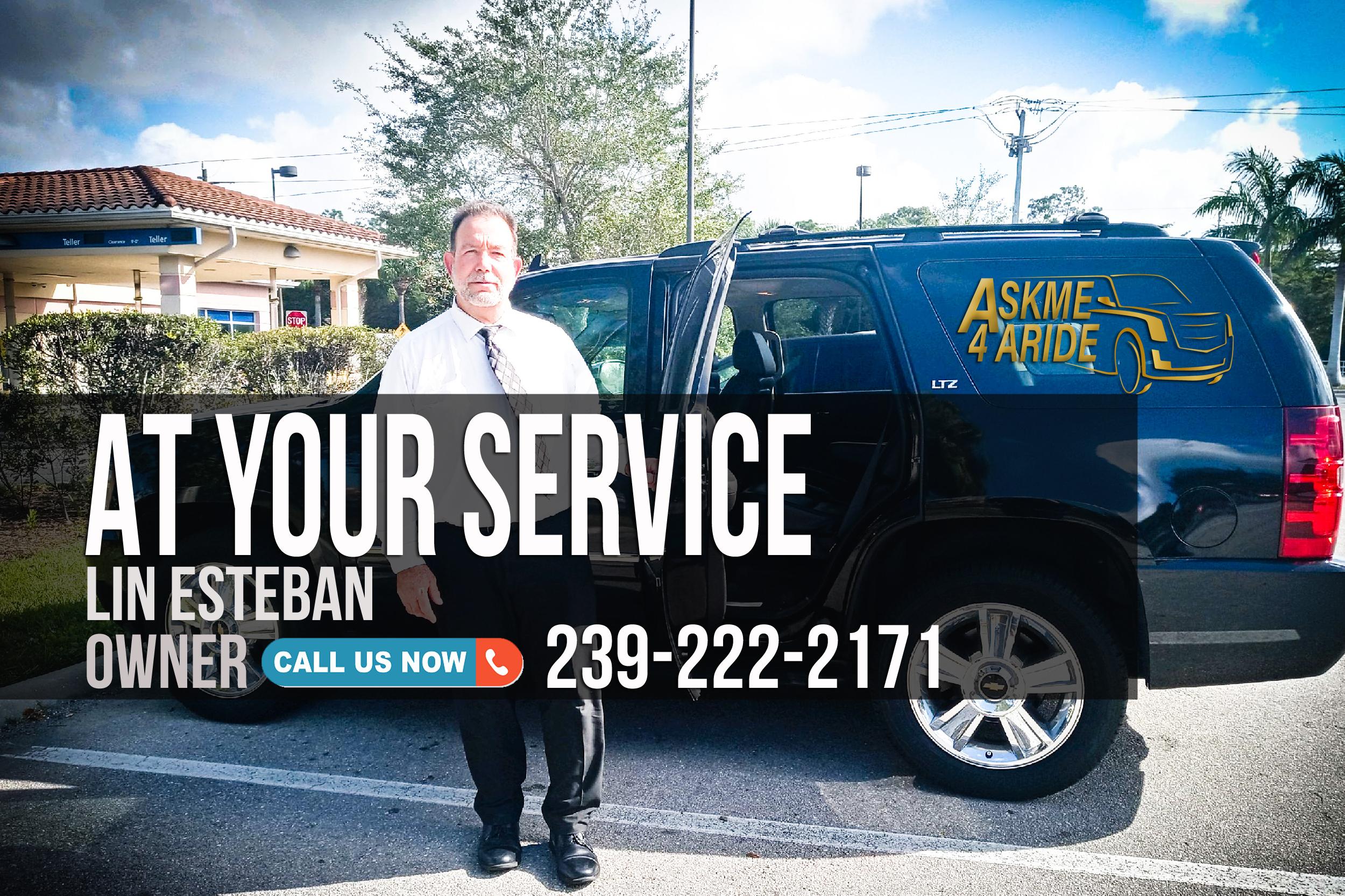 Esteban Lin Transportation, LLC better known as: ASKME4ARIDE. We are a ground transportation company servicing all Southwest Florida and its surrounding areas. At ASKME4ARIDE, we are committed to excellent customer service. We provide our customers with professional, courteous, and qualified chauffeurs. Whether you are planning a romantic evening out, a cruise around the city, or just needing a cost-effective, comfort ride to and from a corporate meeting. Any ride to or from the airport, just give us a call and we will be there.